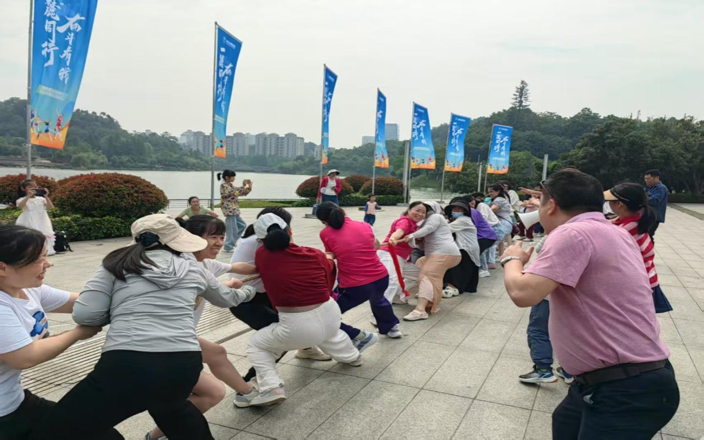 本次健步行活动重在倡导运动健身,同时融入了丰富多彩的团队游戏。“拔河趣无限、工会乐翻天”的拔河比赛点燃了现场的热情,双方队伍都势均力敌、气吞山河;“同心聚力、协作共赢”的探手夺冠游戏,充分体现了团队的协作精神;而“‘球’稳求胜”的球拍运球游戏更是将现场气氛推向高潮。整个过程参赛队员都齐心协力、同舟共济,参与活动的家属也热情高涨,自发组织拉拉队,呐喊助威声此起彼伏。